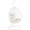 Ronde rotan hangstoel in stevig zwart metalen frame inclusief kussen. Deze hangende rieten stoel is een stijlvol stuk dat dankzij de zachte en dikke kussens ultiem comfort zal bieden na een lange dag. Stevig metalen frame zorgt voor stabiliteit en uithoudingsvermogen van het stuk. De mand is gemaakt van PE rattan waardoor hij slijtvast is en in de trendy boho stijl gehouden wordt. Plaats de schommelstoel in de woonkamer, bij het raam of voor de tv of op het balkon om van de frisse lucht te genieten.