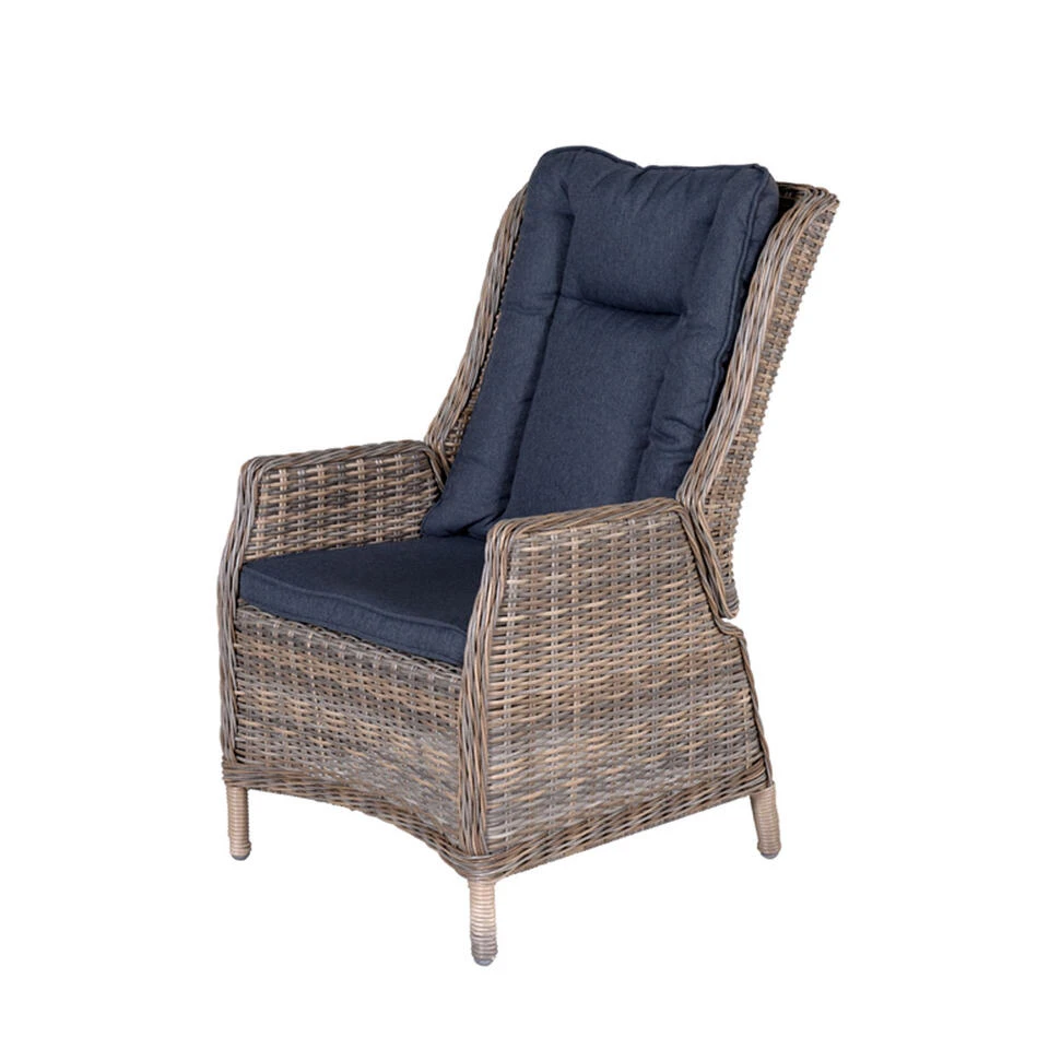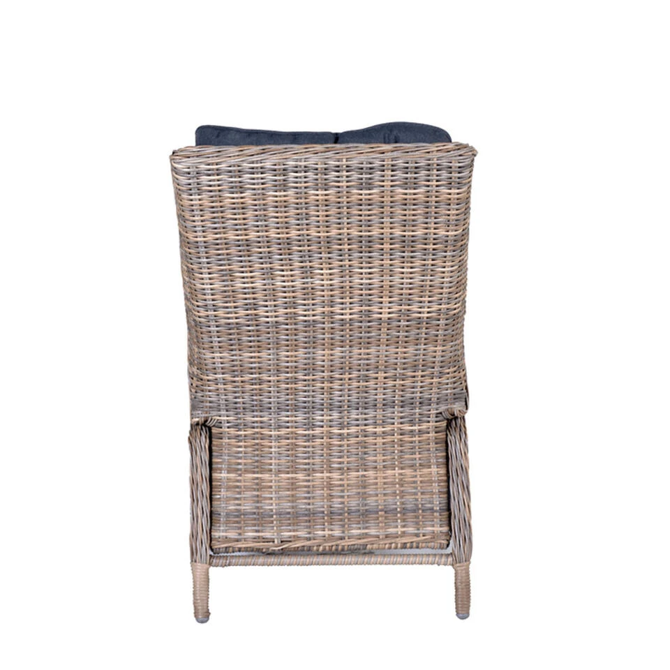 Deze verstelbare wicker tuinstoel is voorzien van een gasveer van een hoogwaardige kwaliteit. Voor behoud van de gasveer is er gebruik gemaakt van een koker met kunststof sluitingsranden om de gasveer. Dit voorkomt dat er zomaar vocht bij de gasveer kan komen. Uiteraard kan door de jaren heen er wel wat vocht bij komen. Om dit zoveel mogelijk te beperking wordt er aangeraden om de stoelen bij nat of vochtig weer af te dekken met een passende beschermhoes.