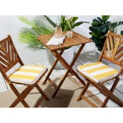 De kussens zijn niet waterbestendig en dienen na gebruik te worden opgeborgen in de schuur of in een kussenbox. Wel zijn de kussens voorzien van een waterafstotende coating. Dit is vooral erg praktisch als er bijvoorbeeld op het kussen wordt gemorst met drinken. Je veegt het vocht er namelijk gemakkelijk weer af.