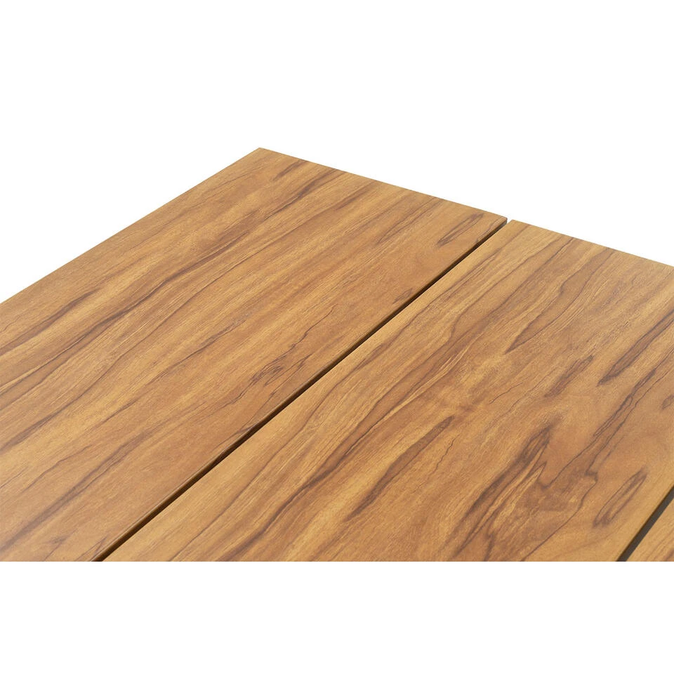 Op zoek naar een mooie tuintafel met het uiterlijk van teakhout en een robuust onderstel? Dan is de Zadar tafel ideaal geschikt voor jouw! Deze tuintafel heeft een teak look aluminium tafelblad en is leverbaar met verschillende onderstellen. Een prachtige tuintafel met weinig onderhoud! Deze tuintafel is goed te combineren met verschillende soorten tuinstoelen. De Zadar tuintafel van kwaliteitsmerk Garden Impressions is vervaardigd uit een onderhoudsvrij en weerbestendig aluminium frame met een stevige donker grijze poedercoating. Deze laag zorgt ervoor dat het frame kras en stootvast is. Het tafelblad is voorzien van een teakhout look, maar is gewoon van aluminium. Dit geeft de tuintafel een uniek uiterlijk en is gemakkelijk af te nemen met een doekje. Het tafelblad heeft een afmeting van 180×100 cm en heeft een X-style tafelframe. Aluminium is schoon te maken met een sopje met groene zeep en lauw water. Voor het drogen kun je het beste een pluisvrije doek gebruiken. Na ontvangst dient de tuintafel nog gemonteerd te worden. De poten dienen nog aan het blad gemonteerd te worden. Dit is op een gemakkelijke manier zelf te doen door de bijgeleverde handleiding en montage benodigdheden. De Zadar serie bevat verschillende afmetingen tafelbladen, maar ook verschillende onderstellen. Zo heb je de keuze uit een afmeting van 180 x 100 cm of 220 x 100 cm.